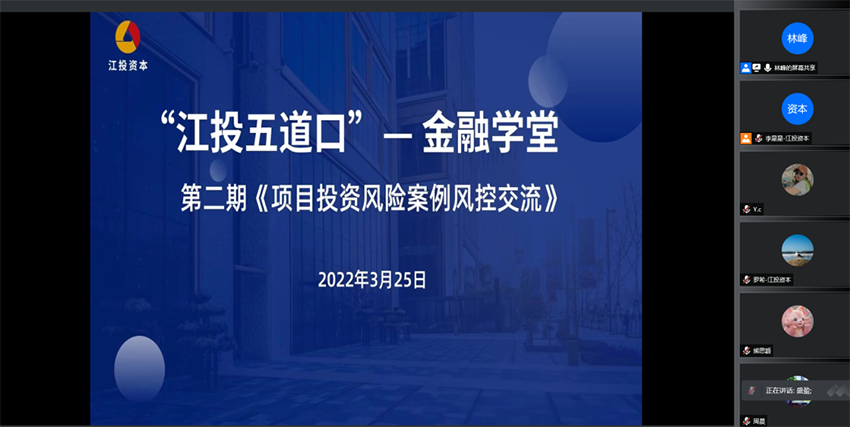“江投五道口”金融學堂是塑造江投資本企業文化的重要内容。在《盡職調查實務分享》中,部分業務人員就盡調過程中遇到的實際問題與授課老師進行了相互交流與探讨,為規範盡職調查、創造企業價值儲備了豐富知識;在《項目投資風險案例交流》中,業務人員就項目風險案例結合自實際工作展開了近三個小時的“思想碰撞”,為項目合規、規避風險提供了豐富經驗。在《企業願景探讨》中,通過線上+線下、講解+讨論的形式将闆塊内全體職工聯合起來,圍繞共建大家心中的江投資本開展大讨論大獻策,營造出企業是我家共建靠大家的良好氛圍。